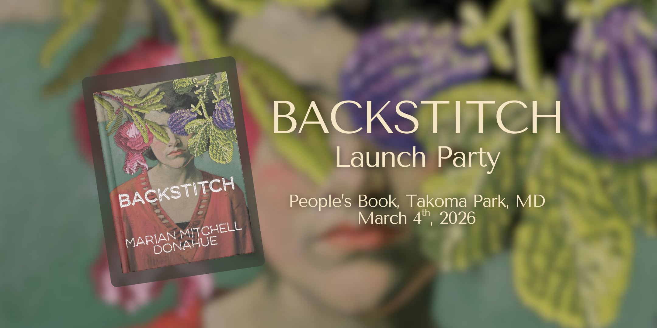 Set in an art gallery in the Washington, DC area, and structured as a journey through the gallery’s rooms, BACKSTITCH is the story of two sisters who reunite at a retrospective of their troubled mother’s art and must confront the consequences of her ambition and the difficult, private truths behind the family’s public narrative. The novel is an exploration of family ties, the gift and cost of artistic talent, and the legacy that the artist’s daughters must carry.